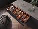 доступны в двух цветовых вариантах: кремовая экокожа в сочетании с черным бархатом, черная экокожа в сочетании с медным бархатом