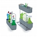 Выдвижной механизм с центральной рамой и полками для хранения различных средств для уборки дома. Функциональная боковая часть легко снимается и переносится в место уборки. Дно съемного модуля снабжено силиконовыми ножками, чтобы ставить его на любые поверхности, не повреждая их. Емкости Клининг Агента снабжены перемещаемыми делителями для надежной фиксации.
